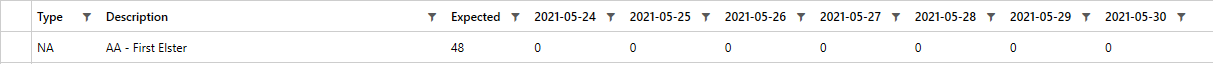 The item source of this gridview is bound to a DataTable programmatically. The amount of columns change depending on how many days the user wants to see. I need all of the Date cells to have a foreground (Text colour) of red if they do not equal the number in the expected column.
