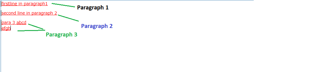 1) Typed "firstline in paragraph1"