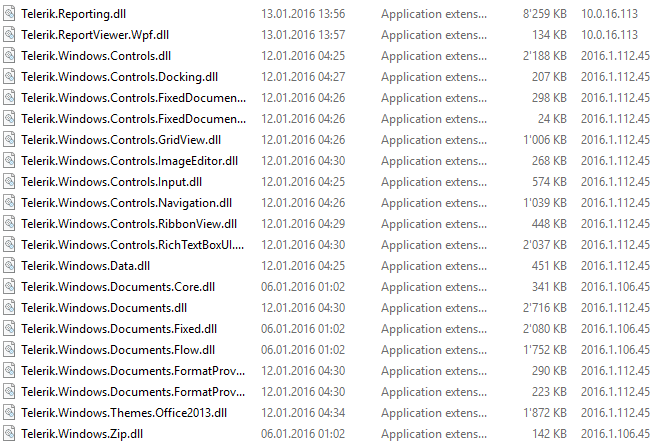 - Reporting 10.0.16.113 and UI for WPF 2016.1.112.40 - should work without binding redirects for UI for WPF assemblies;