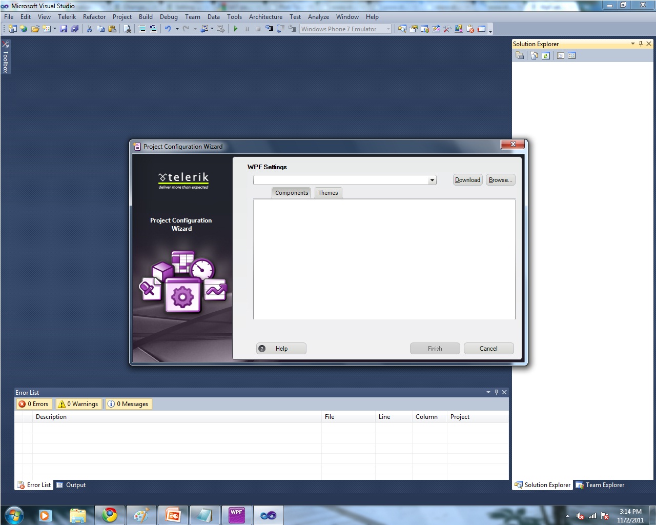 When i on visual studio 2010 , i click new project. After i choose C# RadControls WPF application , it will appear a window let me to choose the components and theme but it does not have any WPF setting to allow us to choose. Because of it , i cannot create the WPF application to use.