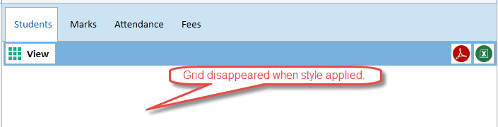 <ResourceDictionary xmlns="http://schemas.microsoft.com/winfx/2006/xaml/presentation" xmlns:telerik="http://schemas.telerik.com/2008/xaml/presentation" xmlns:fw="clr-namespace:SSMS.Framework;assembly=SSMS.Framework"> <Style TargetType="telerik:RadGridView"> <Setter Property="ShowGroupPanel" Value="False" /> <Setter Property="AutoGenerateColumns" Value="False" /> <Setter Property="RowIndicatorVisibility" Value="Collapsed" /> <Setter Property="CanUserFreezeColumns" Value="False" /> <Setter Property="IsReadOnly" Value="True" /> <Setter Property="BorderThickness" Value="1,1,1,0" /> </Style> <Style x:Key="BoldStyle" TargetType="telerik:GridViewRow" BasedOn="{StaticResource GridViewRowStyle}"> <Setter Property="FontWeight" Value="Bold" /> </Style>...........................etcIf i remove the below part from GridViewStyle.xaml, the grid appearing fine, but i want to configure those settings globally.