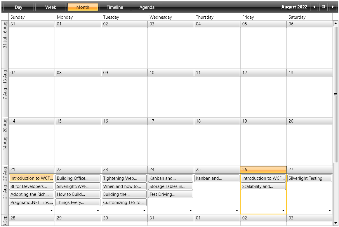 By default, the RadScheduleView control is displayed in a manner similar to the one you described in the Month view:
