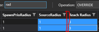 We see that 4 cells are selected, but actually much more got selected! (all the ones in the red box, so from "SourceRadius" to "Reach Radius" columns, because I guess internally you're using column indexes to select the range of cells?)