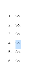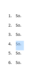 Is there a way to make the numbering value start at the current line(#4) with one extra space highlighted, with only selecting line #4 with the mouse(not clicking on it at all)? For example, following the exact same above steps but not selecting the extra space at the "." punctuation mark produces the following: