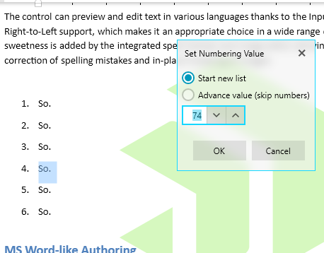 I am trying to determine how to have the set number value start at the current line that is being highlighted in RadRichTextBox for WPF.