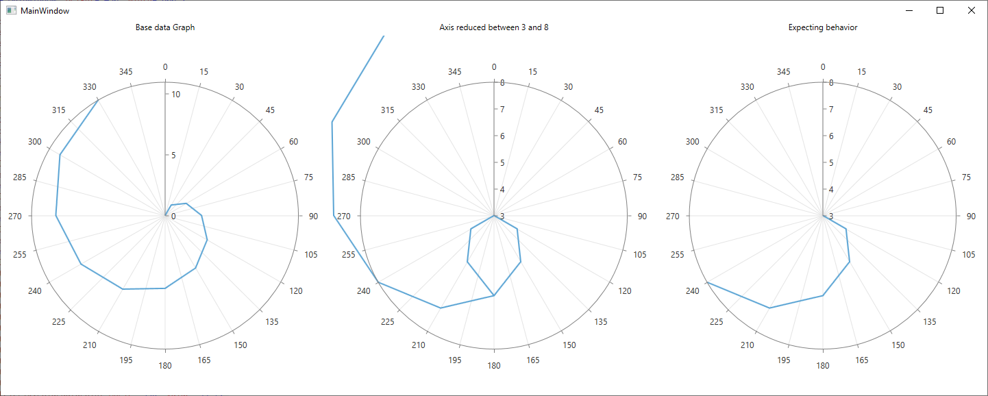 <telerik:PolarDataPoint Angle="330" Value="11"/> If I reduce the PolarAxis to display between 3 and 8, overflow points will be displayed outside the graph and other point will be displayed according to the difference between minvalue and the actual value of the point