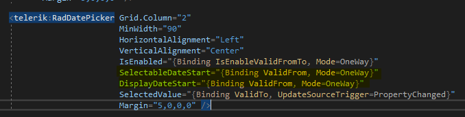 I have some troubles for getting the RadDatePicker working as expected, while using the propertiy 'DisplayDateStart'. Here my code: