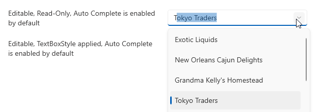 I would like to have the DataFormComboBoxField behave the same way as the Edit mode: Editable, Read-Only and Auto Complete ad in your demo application. But when I set it to readonly it is disabled.