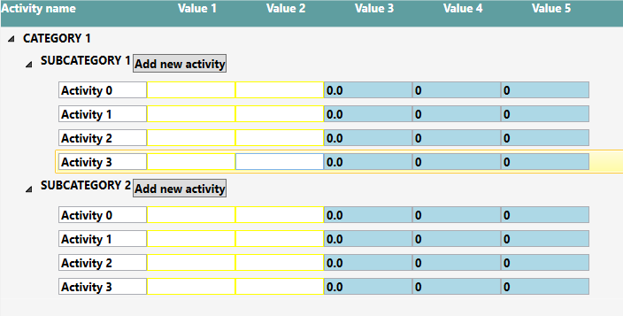 I am using a RadTreeView component in a WPF application that looks like in the following photo. The hierarchy is: a Category can contain a list of SubCategories and a SubCategory contains a List of Activities that have some properties. I would like to transform my RadTreeView into a RadTreeListView or RadGridVew in order to beneficiate from SelectionUnit property and the navigation between cells from the keyboard but I could not find anything that meets by needs: