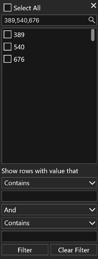 What I'm trying to create is a mode where users can input separations, such as commas, to filter out more results from the selected column.