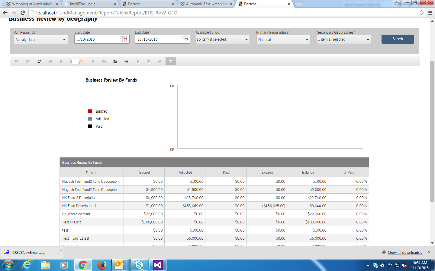 When i tried the replace function,either the graph is not shown completely or the y axis labels are turning out to be 0 with no graph shown.Any idea why that is happening or do you know any other way for textwrapping the x-axis labels.May be like textwrap or i s there any way that i could format the labels text by custom formatting etc.I am attaching a picture for better reference.Please check and let me know.