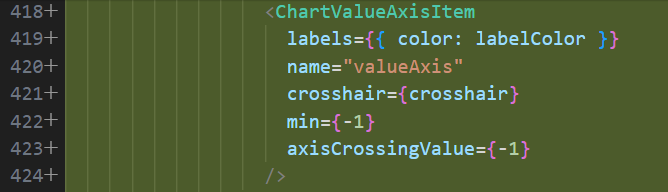 min property on ChartCategoryAxisItem to adjust the axis' minimum value (e.g., starting from a negative number), the axis labels do not appear correctly at the specified min value. Instead, they still start from the actual minimum value of the data. As a result, data points with a value of 0 are obscured, which affects the readability and presentation of the chart.I am facing an issue where data points with a value of 0 are being obscured by the X-axis category labels in Kendo React Charts. I tried setting custom min and max values for the ChartCategoryAxisItem, but this causes the data to be displayed in a flattened manner. Is there a recommended solution to prevent this overlap or display the data points clearly without affecting the overall chart appearance? Thanks in advance!!
