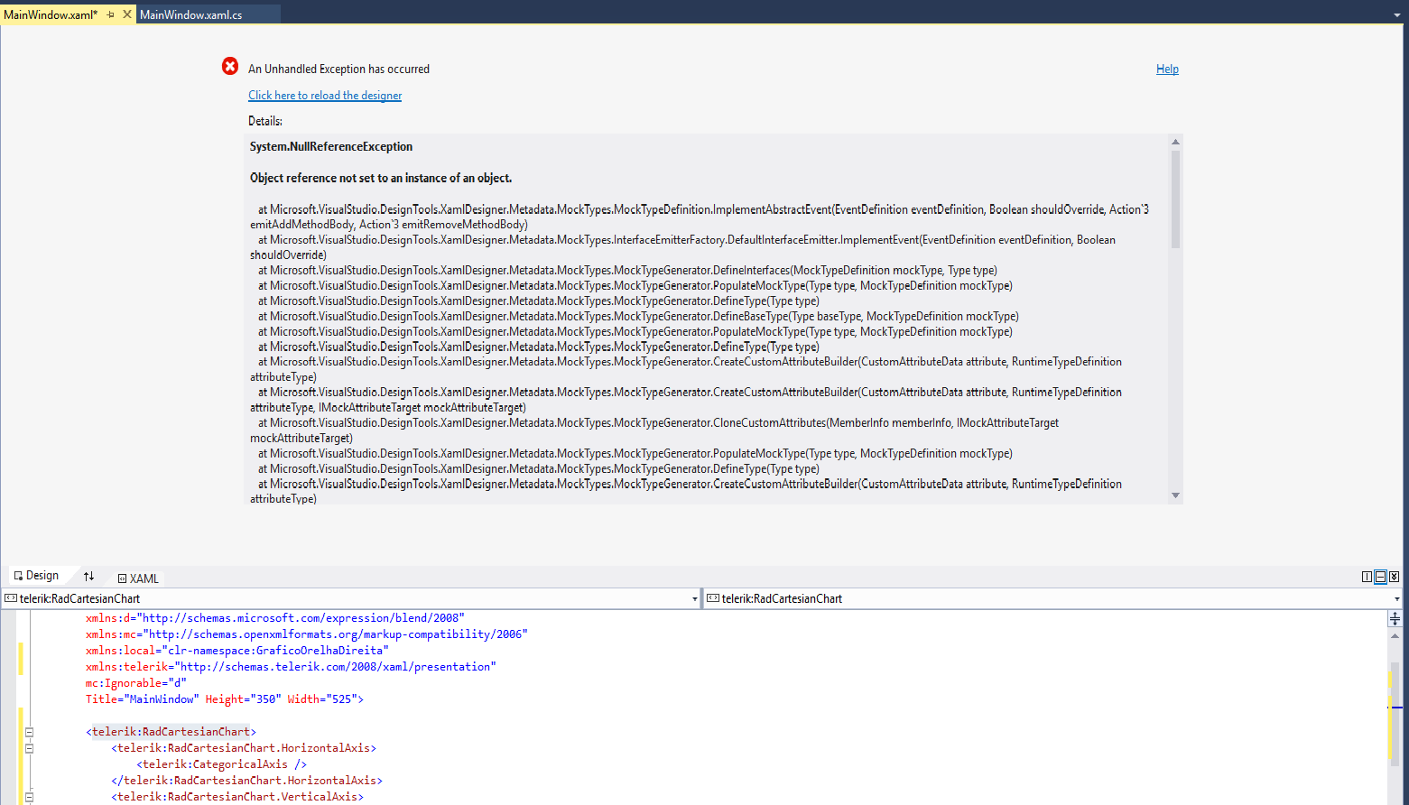 at Microsoft.VisualStudio.DesignTools.XamlDesigner.Metadata.MockTypes.MockTypeGenerator.DefineProperty(TypeDefinition typeDefinition, PropertyInfo propertyInfo)....]