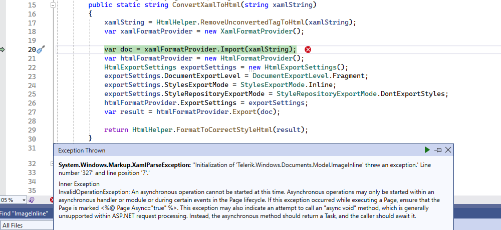I have an ImageInline in xaml file. And loading this image file is relatively slow. So I think it is the main reason throw that exception. Has anyone had this problem? Please help me answer this question.