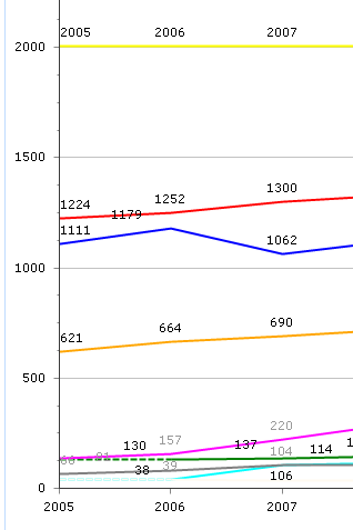 My problem is, that column "year" is displaying on the yaxis (values 2005, 2006 ...) ... if I change the sql statement to
