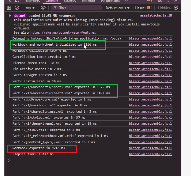 - The .NET runtime in WebAssembly is slower for CPU- and memory-intensive operations, such as exporting even a simple XLSX file, due to the browser sandbox and the nature of WebAssembly execution.