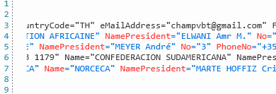 <Responses> <Confederations NbItems="5" Version="2"> <Confederation Address1="Room No.1 – 2, 12thFloor, Main Building, Sports Authority of Thailand