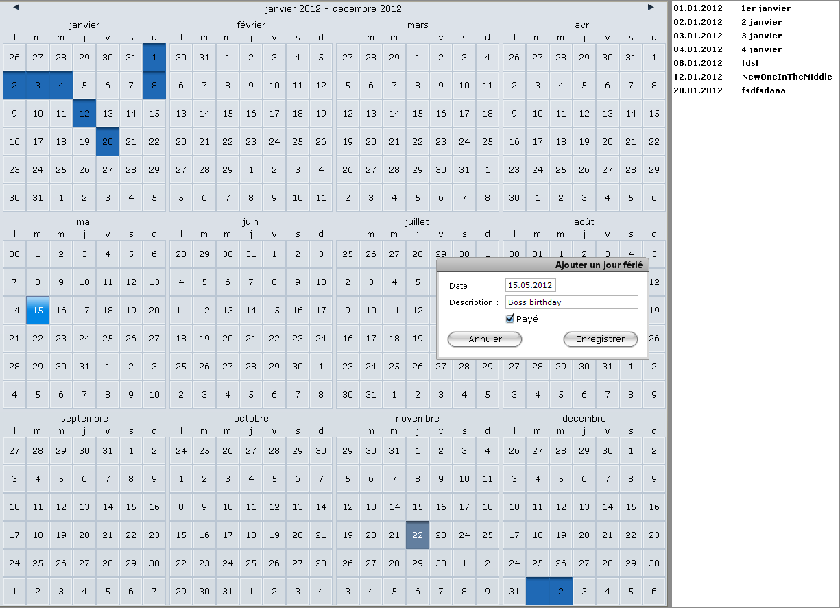 I use a modal forms Add_Jourferie to get the description and the IsPaid properties when a new public holiday is added.