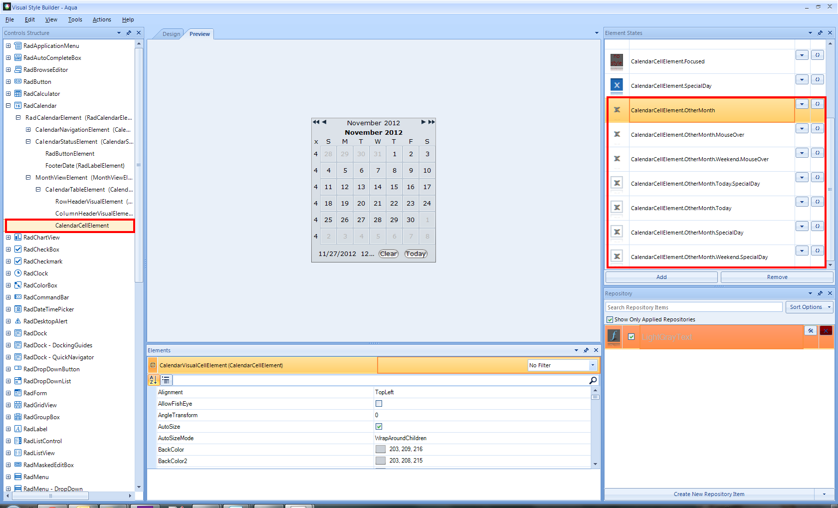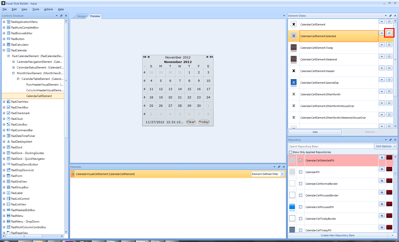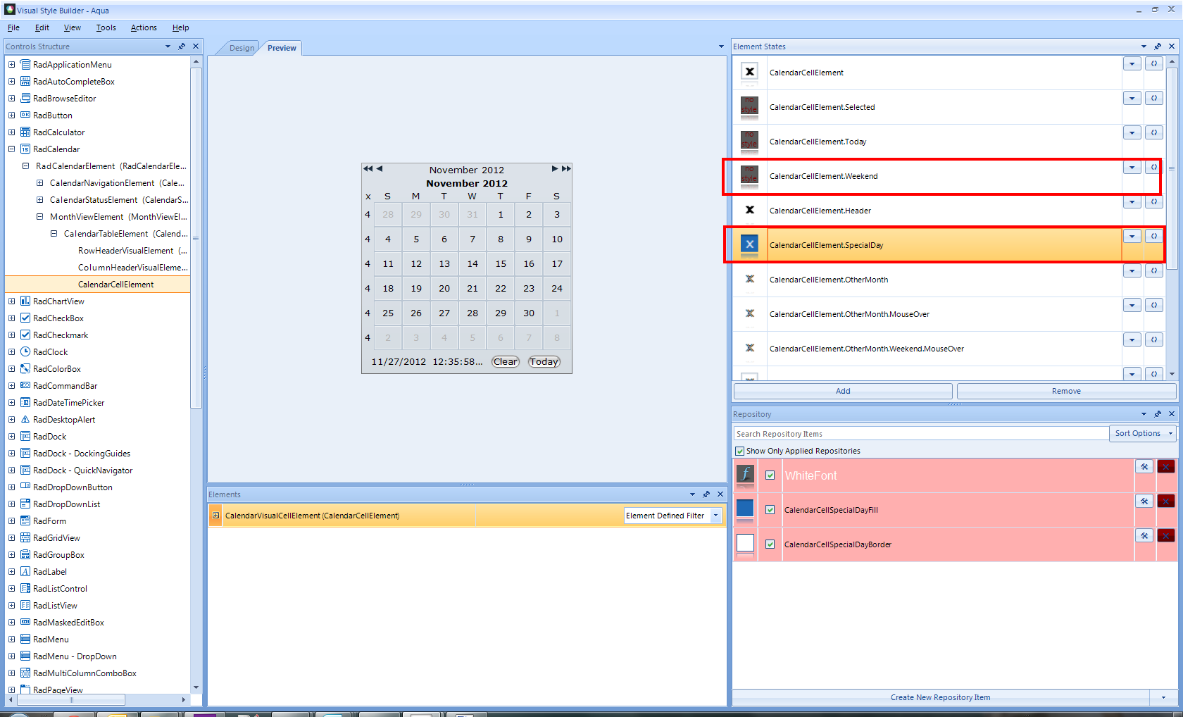 - Change style on the specialDay's CellElement (I don't really like the dark blue)