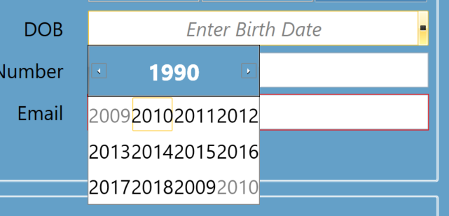 I have found that when scrolling through up and down the years that I get incorrect values. I have attached pictures of these values. Obviously, when I select 1990 I expect to get years listed between 1990 and 2000 but I don't get that.
