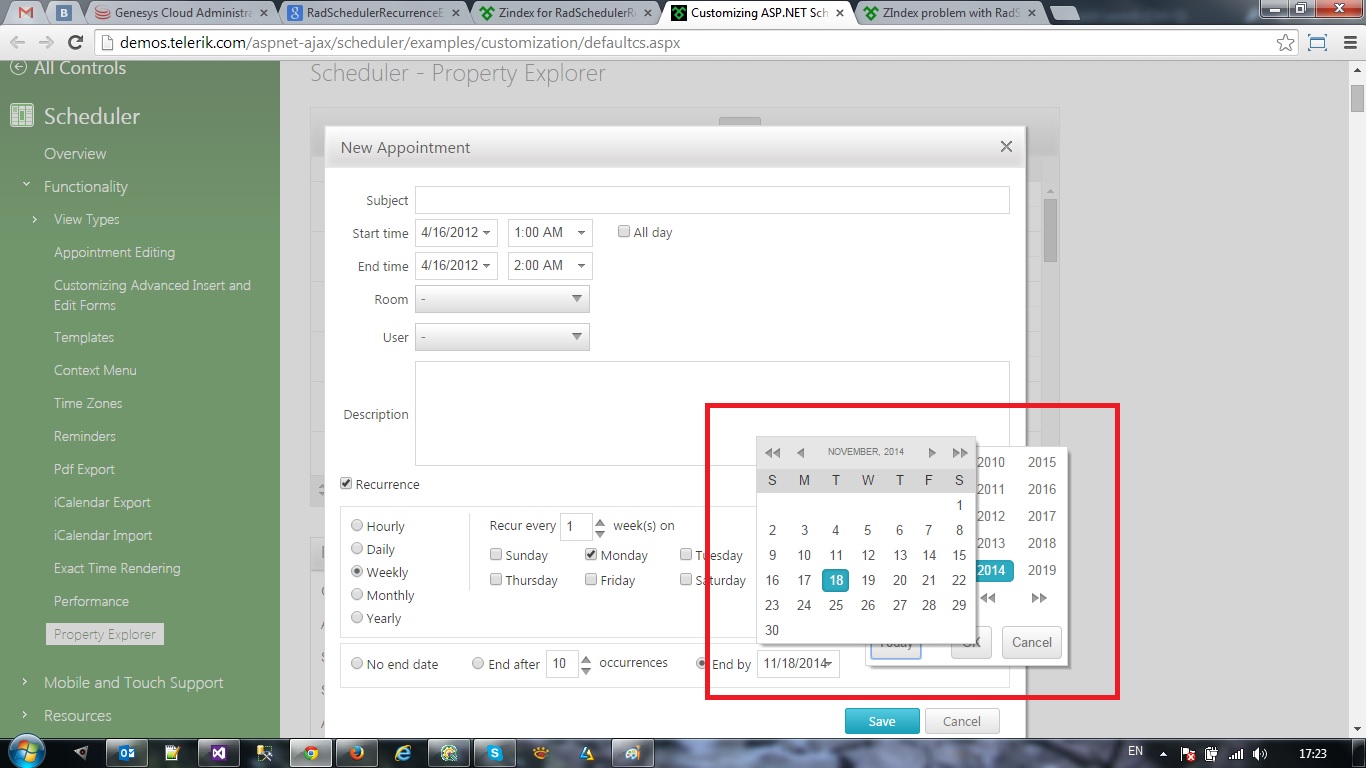 i want set z-index for RadSchedulerRecurrenceEditor.