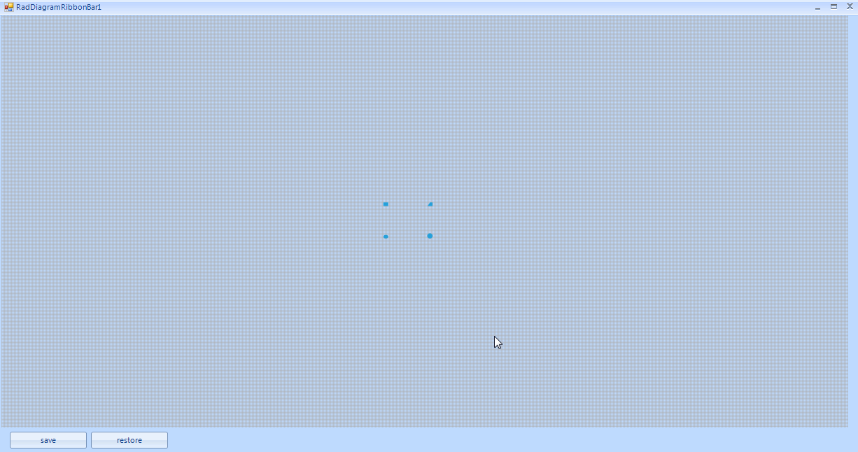 Telerik.Windows.Diagrams.Core.DiagramConstants.MinimumZoom = 0.1 Telerik.Windows.Diagrams.Core.DiagramConstants.MaximumZoom = 10 MyRadDiagram.Zoom = 0.1 MyRadDiagram.IsSettingsPaneEnabled = False MyRadDiagram.DiagramElement.IsBackgroundSurfaceVisible = False MyRadDiagram.BackgroundGrid.Visibility = False MyRadDiagram.BackgroundPageGrid.Visibility = Telerik.WinControls.ElementVisibility.Hidden MyRadDiagram.BackgroundImageLayout = ImageLayout.None MyRadDiagram.BackgroundImage = Nothing posCentral = MyRadDiagram.PositionThe code I use to get back to original zoom: