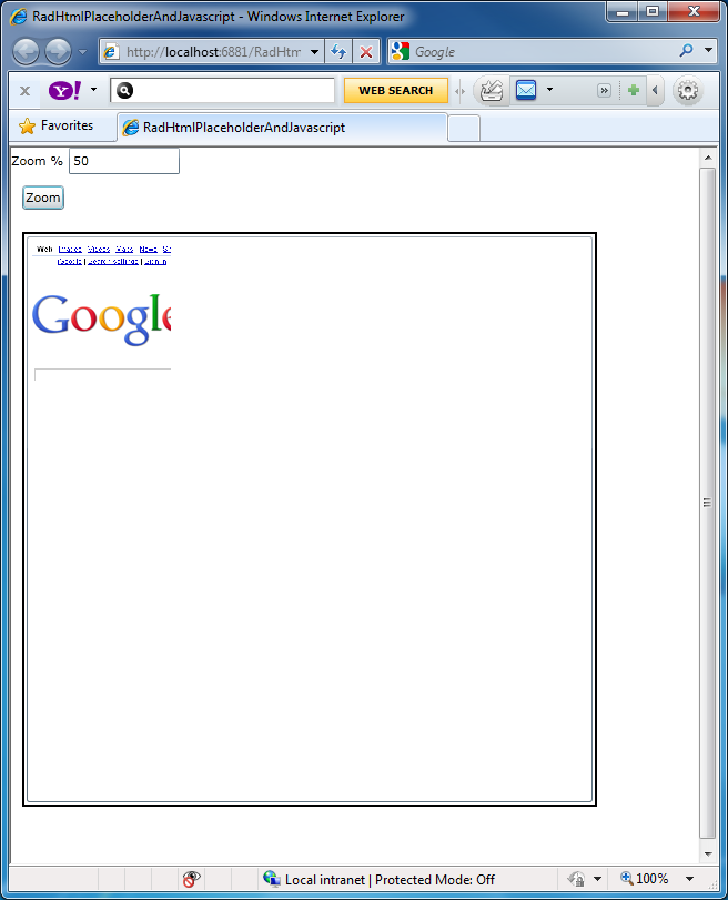 There is one thing that is puzzeling, when a zoom factor is applied the RadHtmlPlaceHolder control is also getting resized.