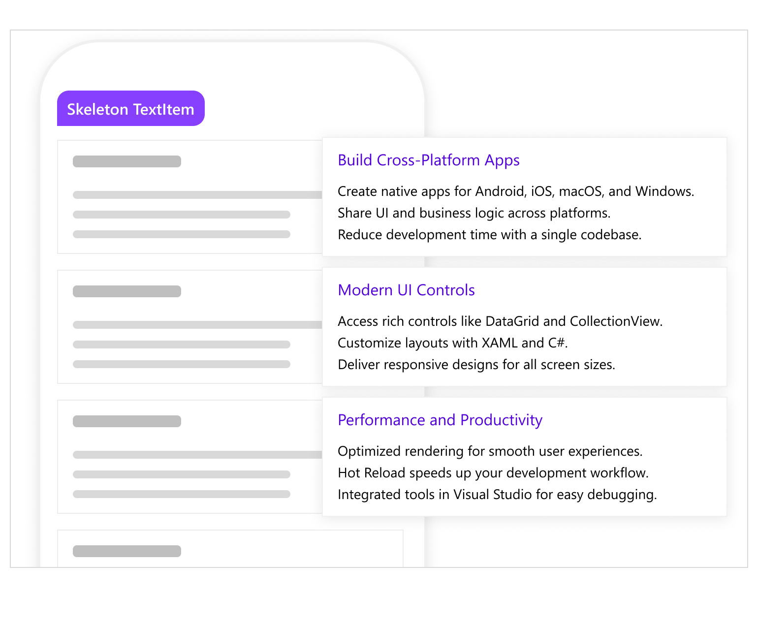 The Telerik UI for .NET MAUI Skeleton component helps you build modern, visually engaging loading states that enhance perceived performance. Instead of leaving users staring at blank screens, the Skeleton displays shimmering placeholders that mimic the structure of your actual content until it’s ready.