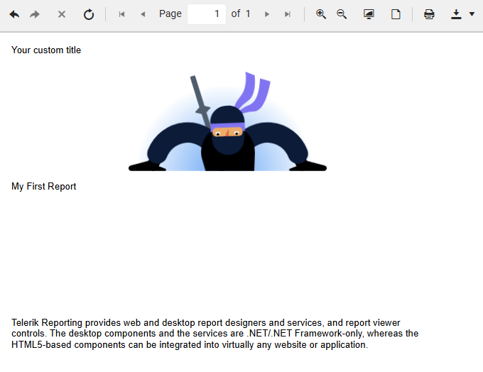 Instead of using fixed data in the report headers/footers, it is possible to pass a title (or any text) from a main report to a TextBox in a SubReport, using the parameter‑passing mechanism. The above example can be further extended by replacing the "Telerik Reporting" text in the HeaderReport.trdp with a value coming from the main report.