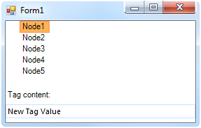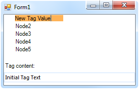 After entering some data, and submitting it, the original Text value appears as text for the node, and the submitted text is now the new value for the Tag property
