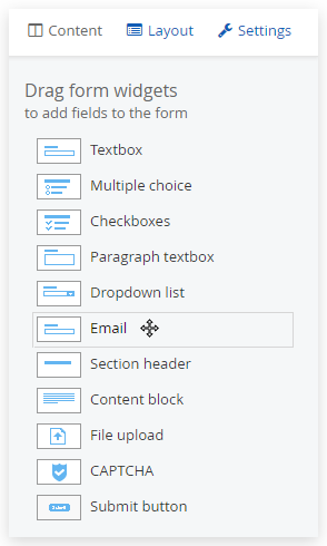 With the new Email widget, it is now easier to design forms with email fields. You do not have to make additional configurations to the Textbox widget to get a respondent's email - you simply drag and drop the Email widget.