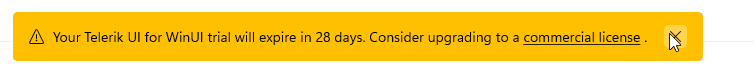 The free Trial license of Telerik UI for WinUI gives access to all functionalities of the product and it will work for an unlimited time. However, once the trial period expires a trial message banner along with a watermark overlay will be displayed.